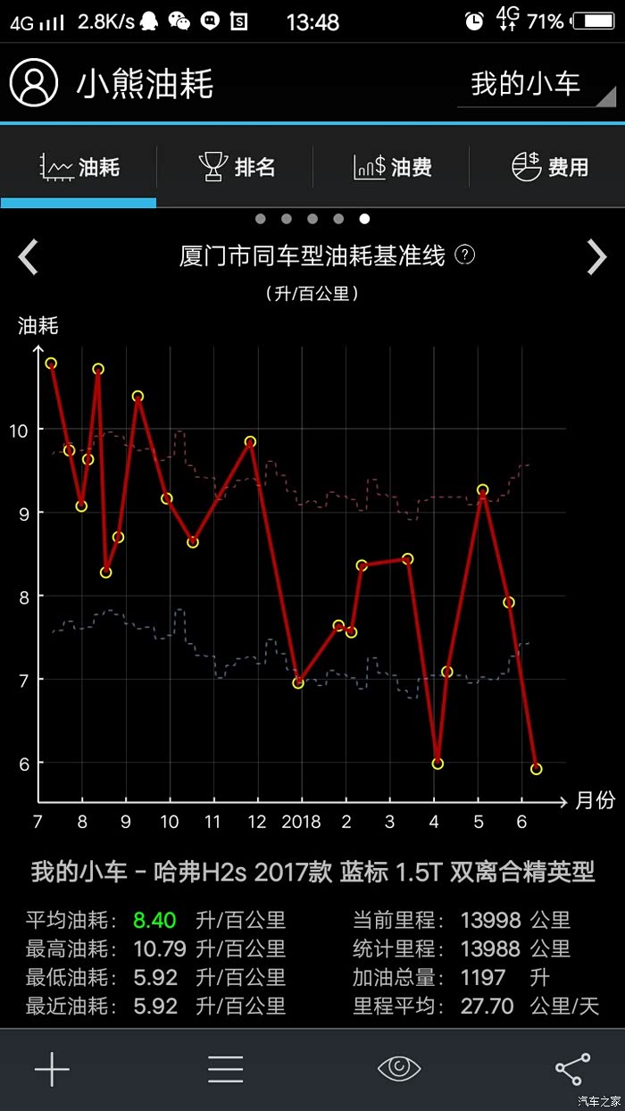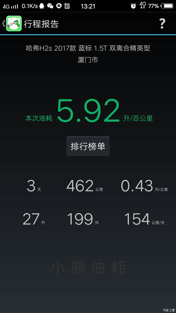 这几天因为出差汕头需要,开车往返汕头厦门,全程跑了570公里,致使总里程达到14000公里。二哈表现依然稳定,不管是综合油耗和车辆行驶状态,都让我使用起来非常舒心和省心!特别是二哈的高速公路行车表现,车稳,胎噪隔绝得益于我前几天加装了全车密封条。下面就分享一下三天时间来回570公里,我用小熊油耗app记录的综合油耗。是本人觉得比较准确的!