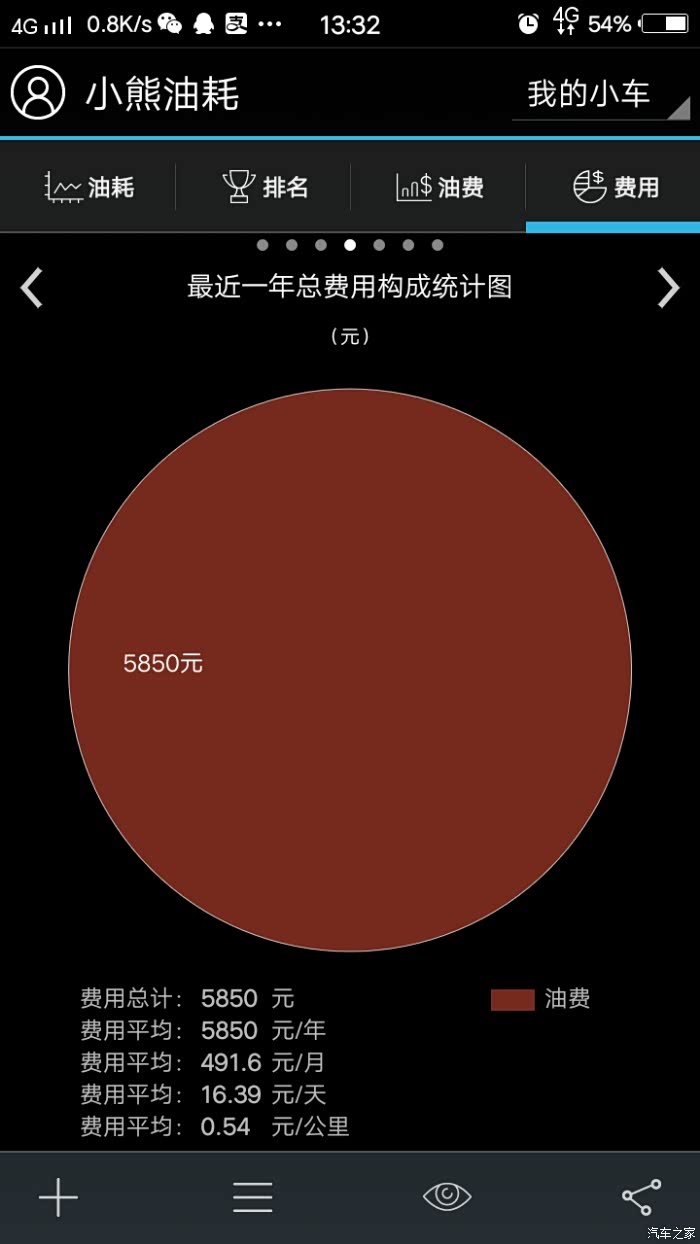 最近一箱油只跑了374公里。这两张截图只有输入新加的油以后,才能截图。非常准确!