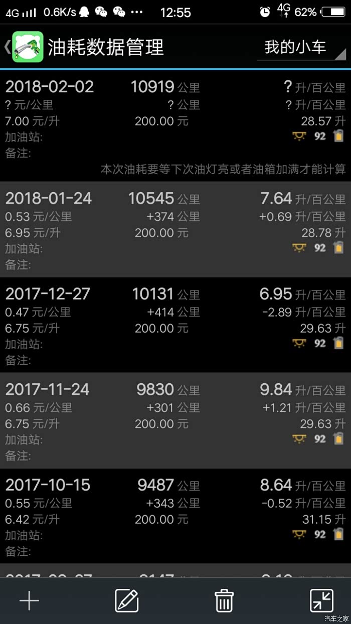 也许上面这张图还不能说明什么,我每次加油都是92号200块钱,油价从2017年初的6.25元涨到现在的7.00元,车子还是得开啊,只能眼睁睁看着每次加200元后,二哈吃得越来越不饱的样子。