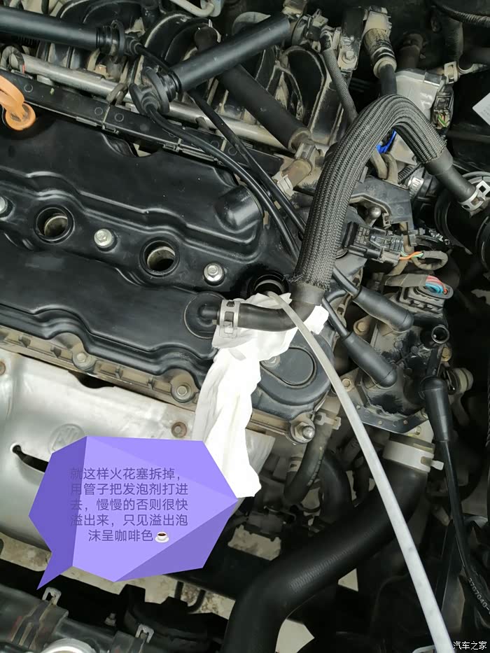 最后依次装入火花塞,缸线插好,检查无误准备启动发动机。第一次没点着,第二三次还是没点着,心里慌了,检查机器到底哪里出问题了,明明缸内废液抽到八九不离十了,点火线也没装错,仔细一想估计是缸内混合气太浓了,空燃比不合理,再来一次,这次多踩油门,频率要快,同时拧动钥匙,果然启动了,怠速有点闷,马上给油门,转速蹭蹭上去,很利索声音不错,排气管烟雾弥漫,一股强臭味,扑鼻而来,再出去大油门开一圈去。这次洗燃烧室还是积累了经验,车子还是要正确保养的。