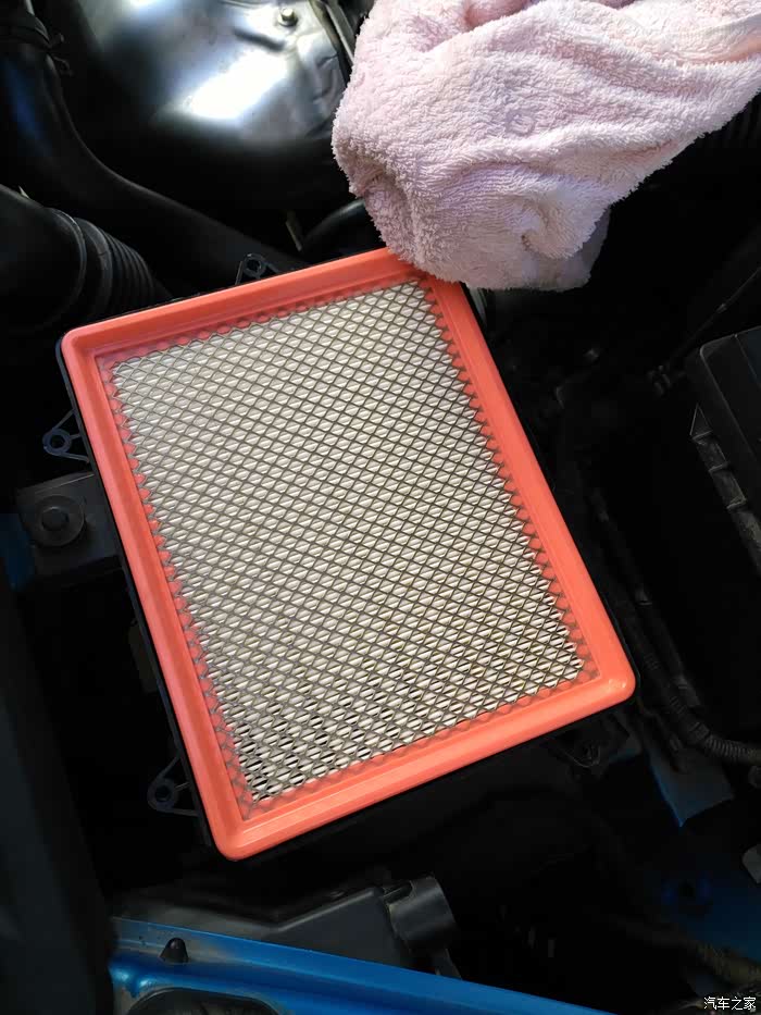 首先拆开空滤上盖,顺便清理下里面的杂物灰土,这个大家都知道怎么拆,7mm套筒