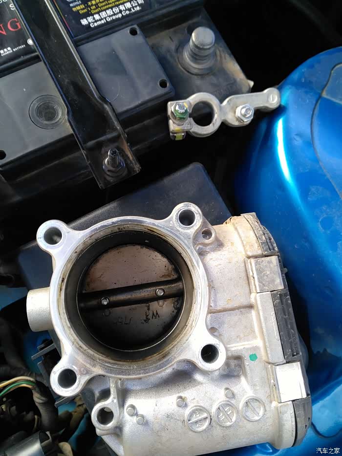 节气门背面还很脏了,注意电瓶负极不需要断开,我看论坛说折节门要断开,不然出现故障码,其实不需要断开。