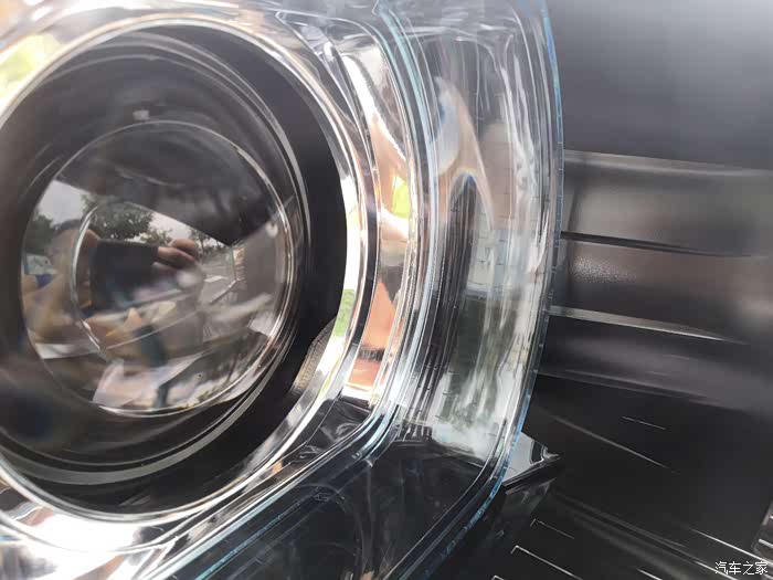 大灯的自带透镜,还有有蓝色的镜圈,打开车灯的时候有着幽幽的蓝光。