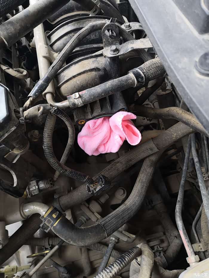 拆除后拿毛巾堵上缸体进气口避免杂物进去。