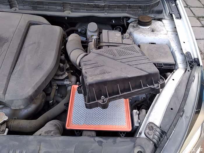 悦翔V7的空气滤芯安装在发动机的进气口附近,在发动机的右侧。