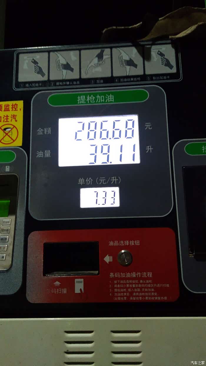 这次去了一趟外地,出发之前加满油,然后把小计里程清零,把油耗也都清零。来回总共559公里,回到家的时候在同一个加油站再把油箱加满。总共加39.11升92号汽油,花了286.68元。用总里程数除以消耗的汽油升数就是本次的油耗了:39.11L÷559km=6.99L/100KM我的爱车是悦翔V7乐享手动档,这次的行程大多数都是高速公路,全程开空调,回程满载5个人。全程跑110KM/H的时速,转速是3400转左右。因为是手动档5挡,所以转速相对比较高。我觉得如果是有个6挡的话,估计油耗还可以再低一些。话说,现在油价真高啊,好怀念以前5元油价的时代。