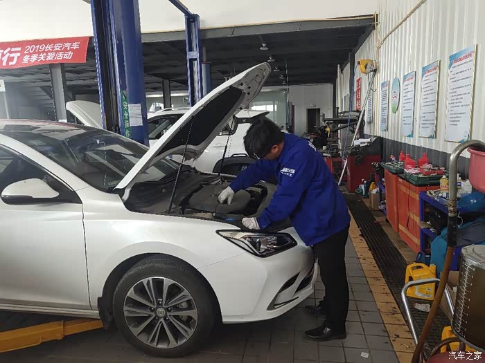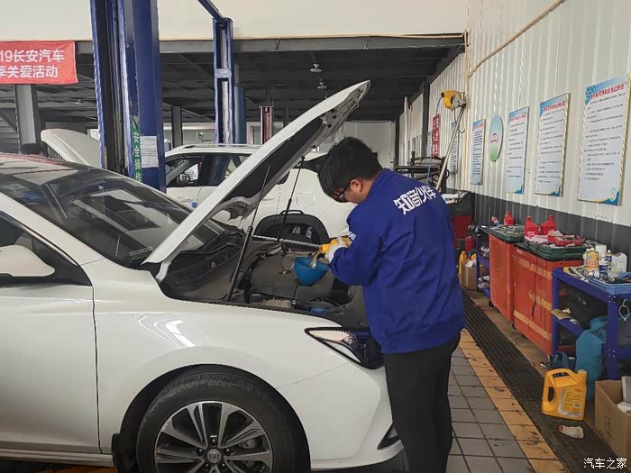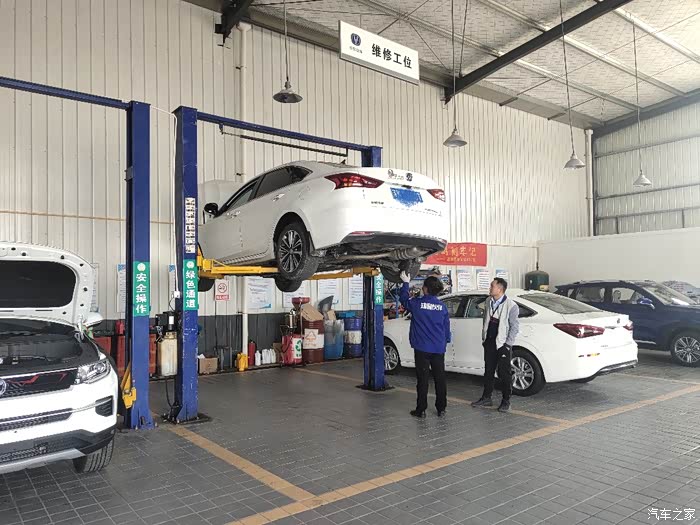 保养小哥哥把我的爱车开到维修工位准备保养就位