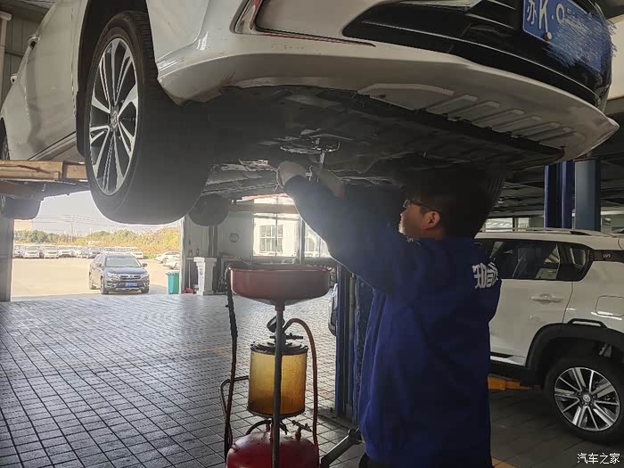 在师傅帮我换机油时候,我和保养小哥哥又说了,帮我看一下车轮胎,之前好像被啥东西碰到,钉上了,麻烦保养小哥哥帮我看一下,人家热情说好,等一下在帮你把车子升起来看一下。