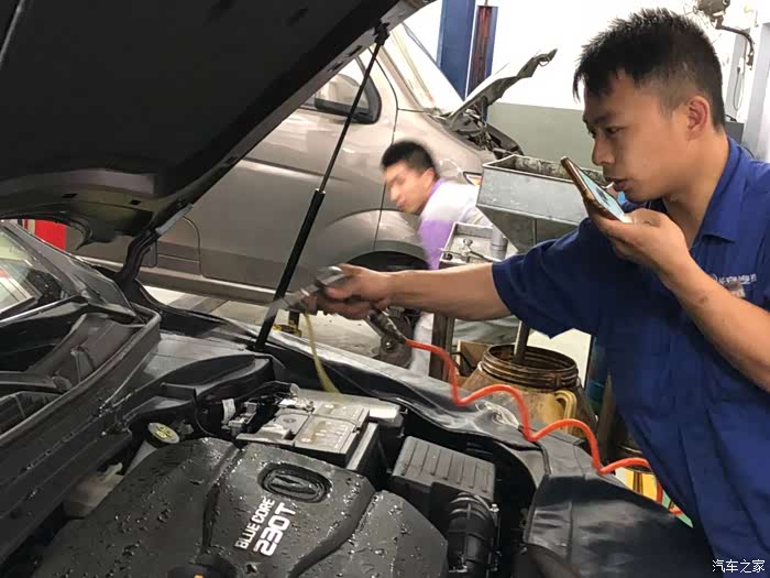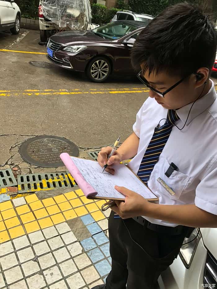 这个4S进门真的叫拥挤,对于我一个女司机来说,真的是经历81难才把车开进维修工位,服务客服在检查车辆登记。