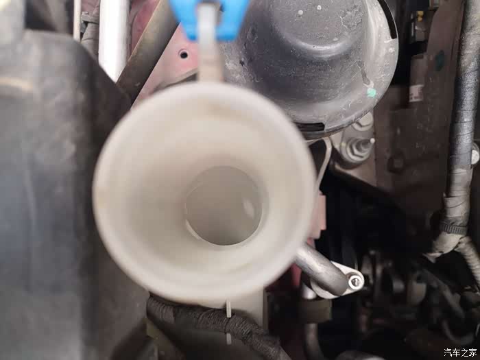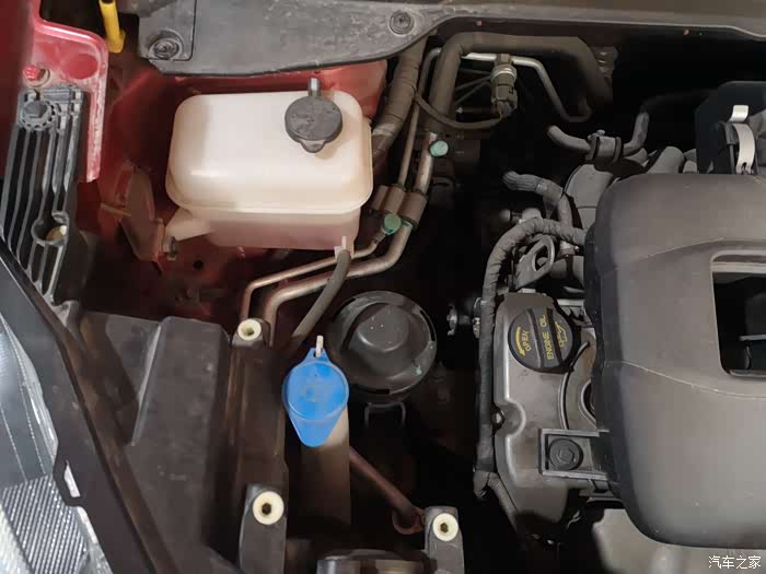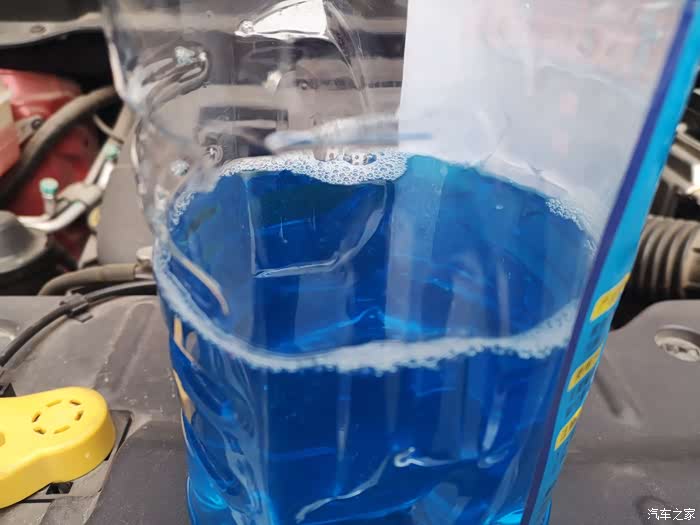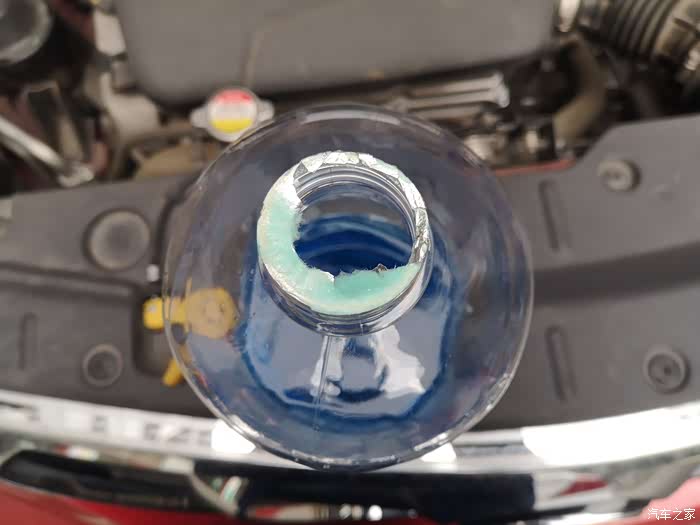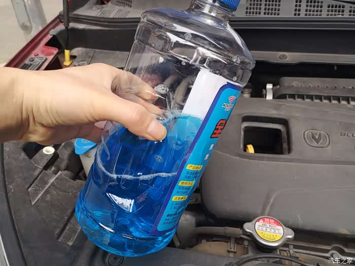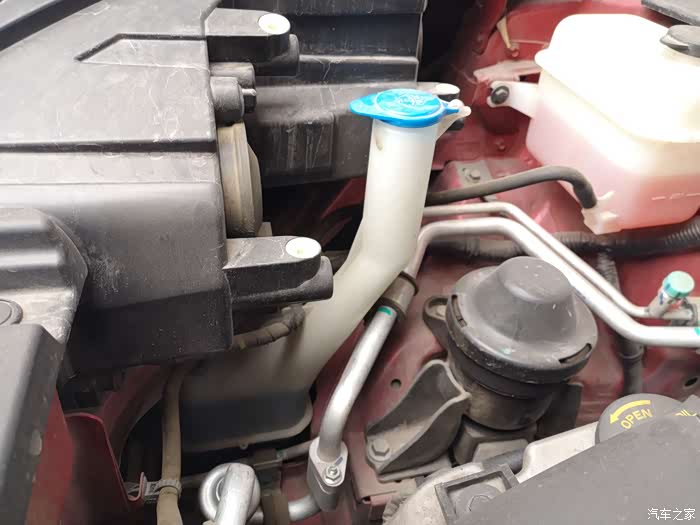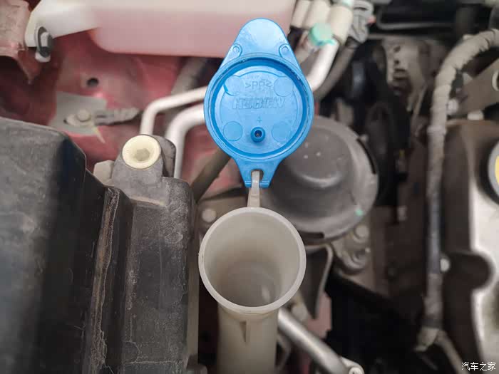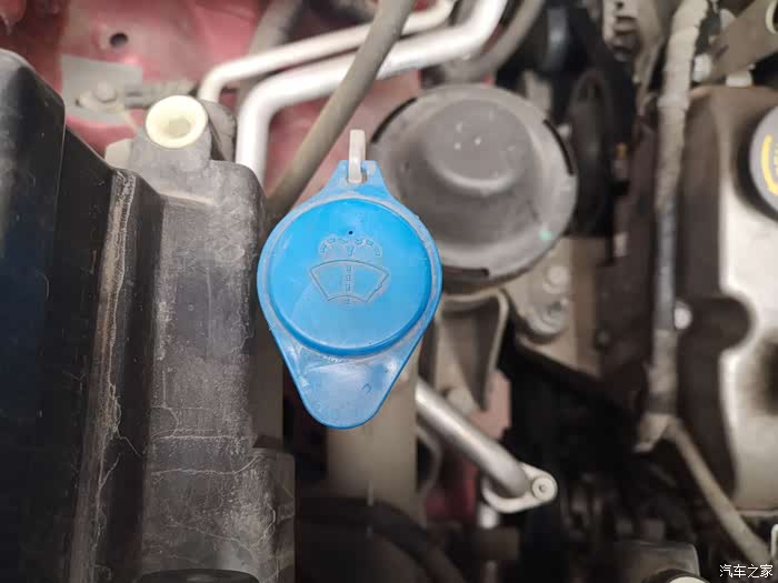 不过我们千万别加错了地方哦。这个蓝色的才是雨刷液壶。