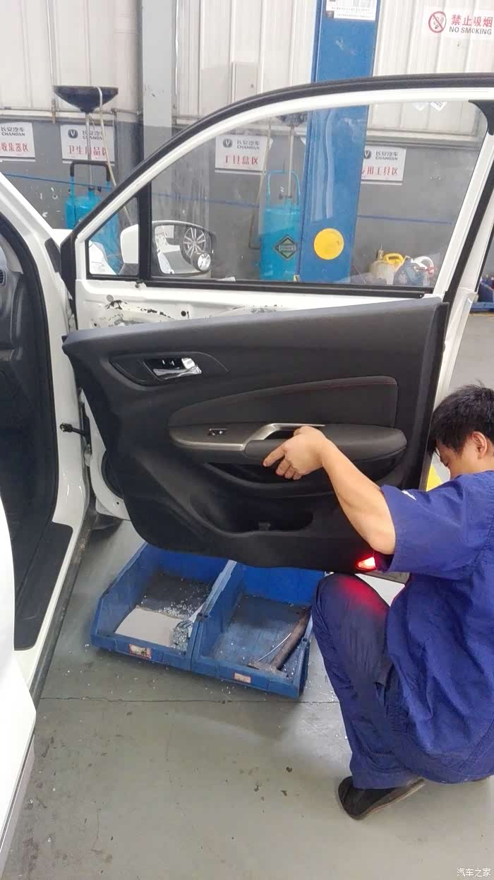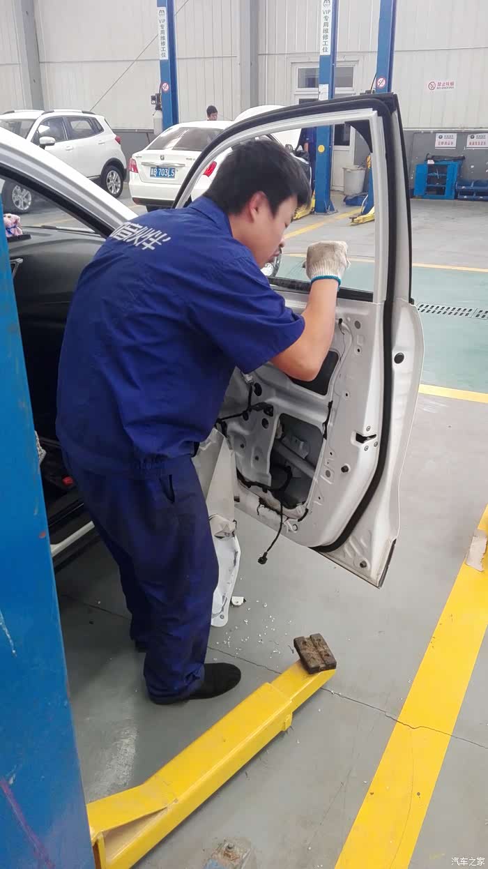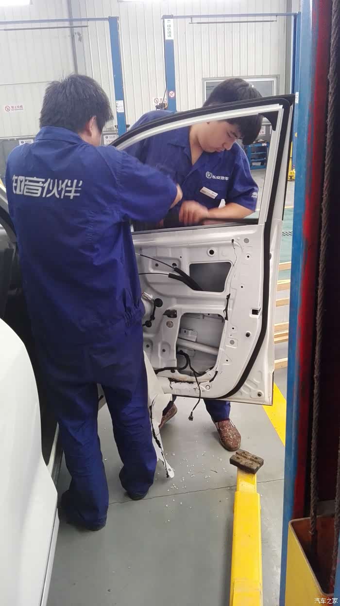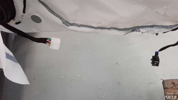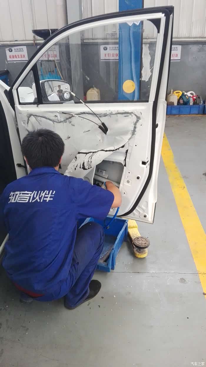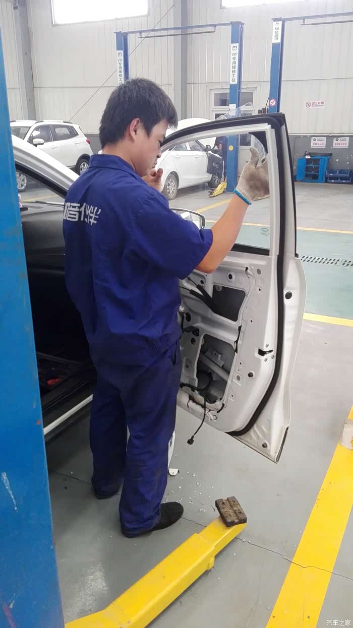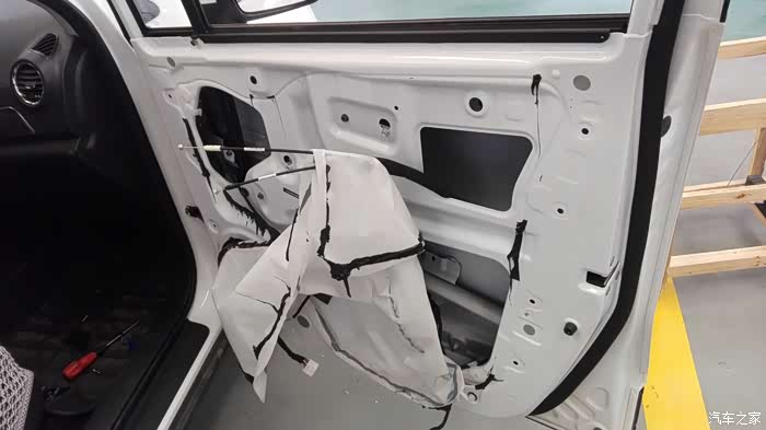 师傅已经拆开了副驾驶的门,这个薄薄的塑料师傅说是防风的。还有好多黑色胶,起密封作用的。还有像闸线一样的东西,起到连接作用。