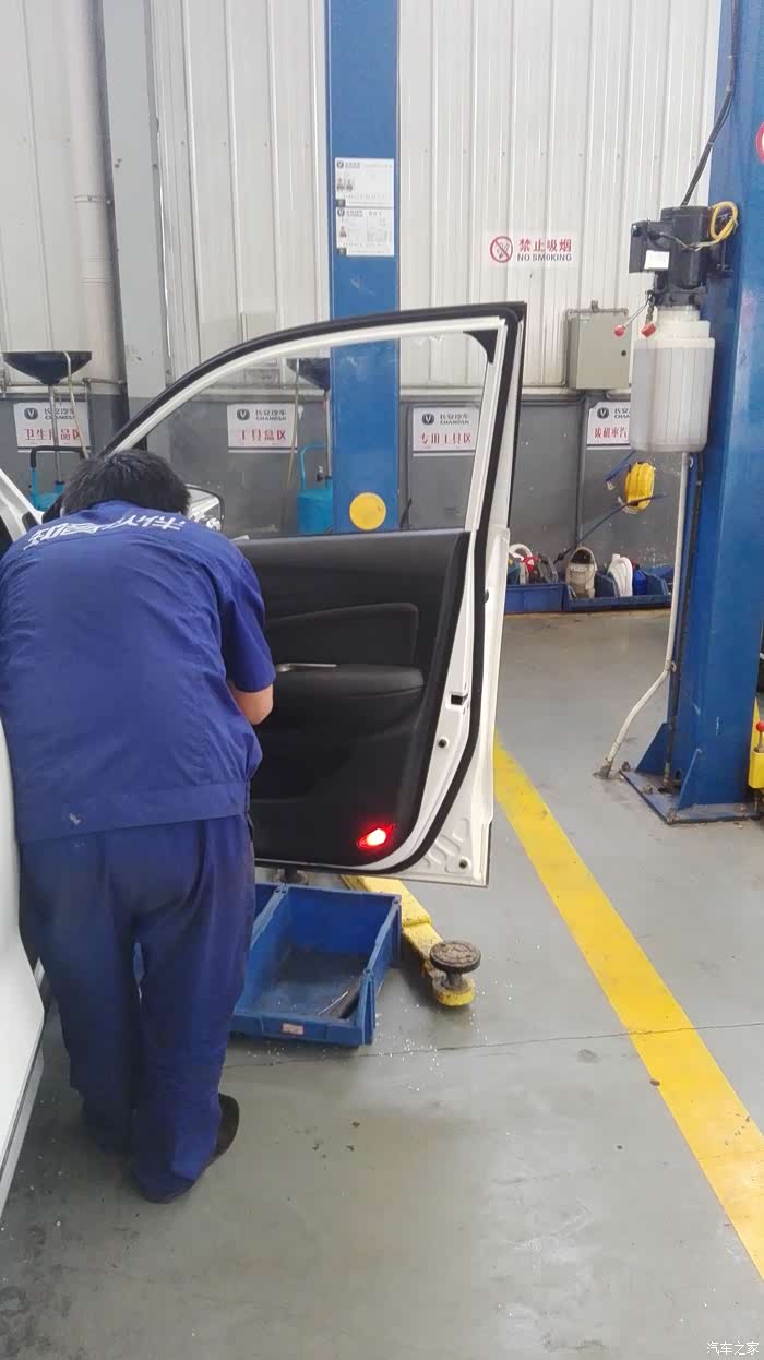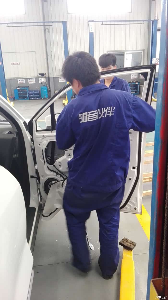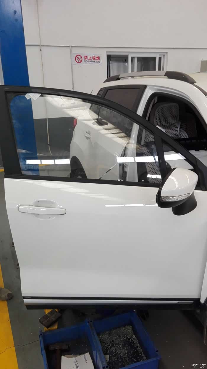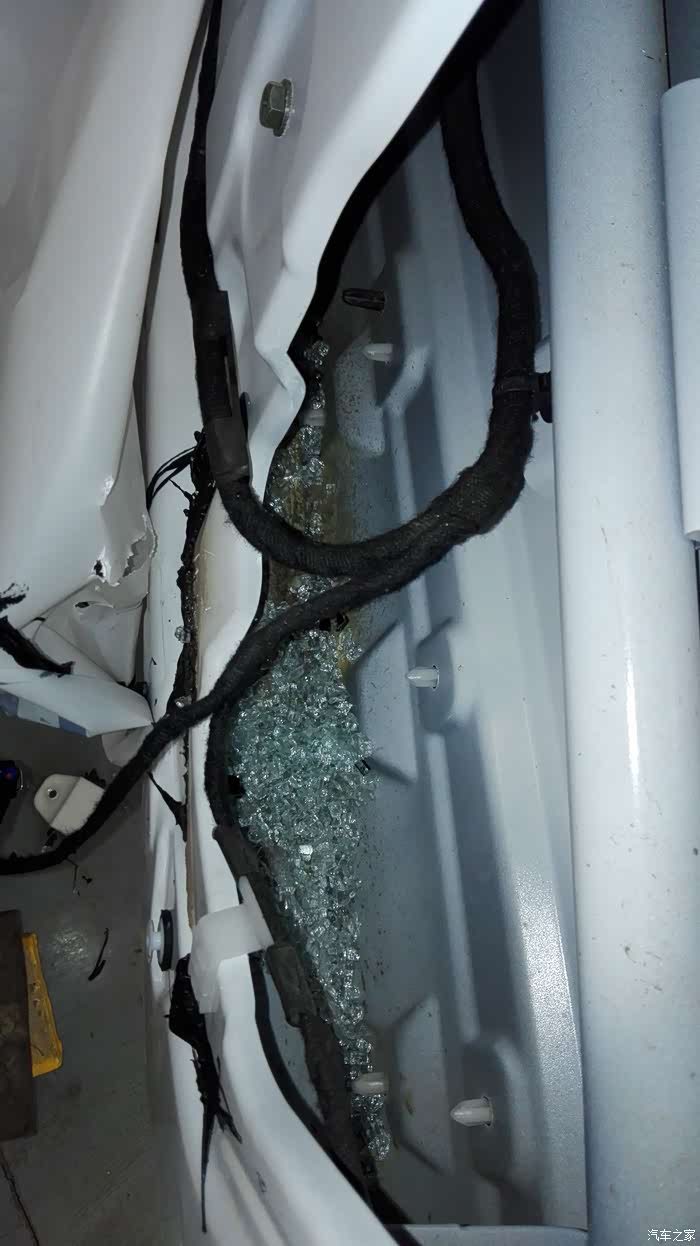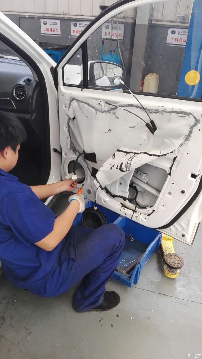 师傅已经拆开了副驾驶的门,这个薄薄的塑料师傅说是防风的。还有好多黑色胶,起密封作用的。还有像闸线一样的东西,起到连接作用。