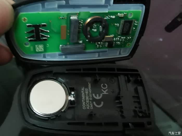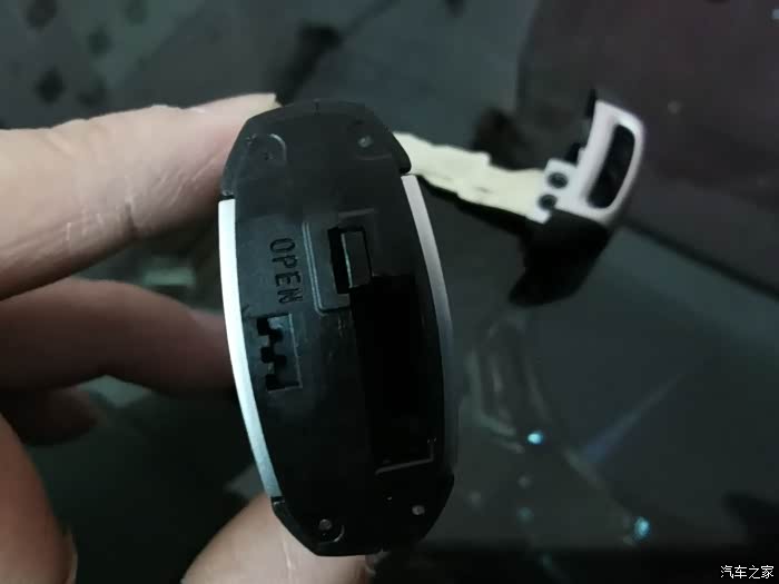 然后把机械钥匙插回去。完美的把新电池更换上去了。左侧的电池楼主是更换的车钥匙壳。右侧的为原厂。
