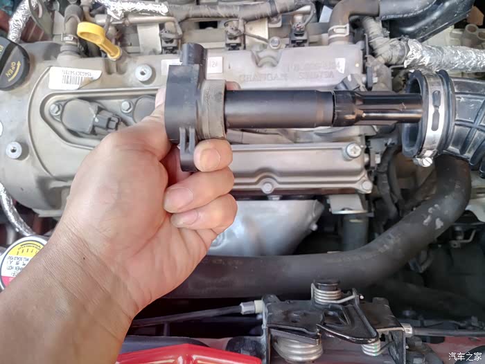 拆掉发动机罩,会换空气滤芯的都会拆,不会拆的看我帖子,拆螺丝,拔高压包,第一次都是有点紧,不要怕,大力拔,用巧劲就可以了!