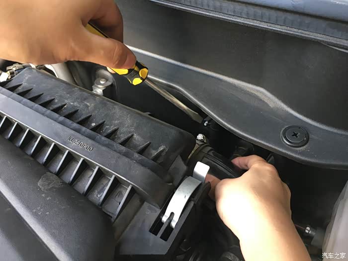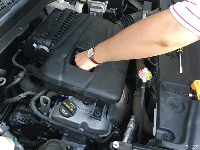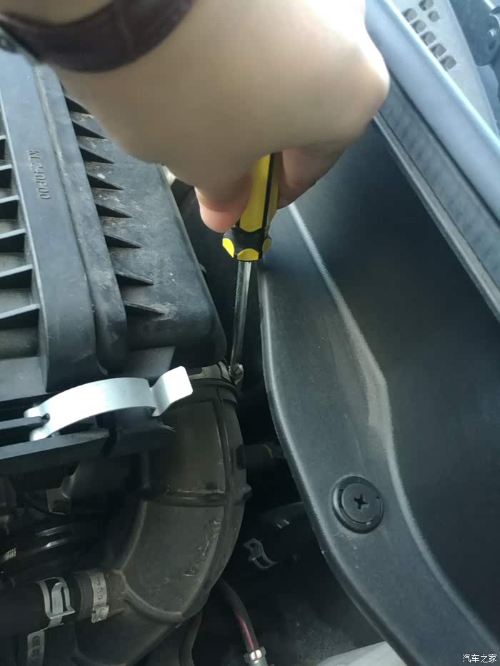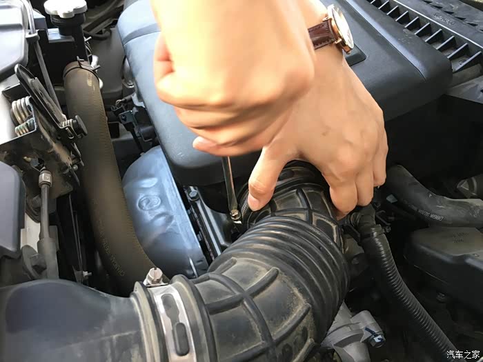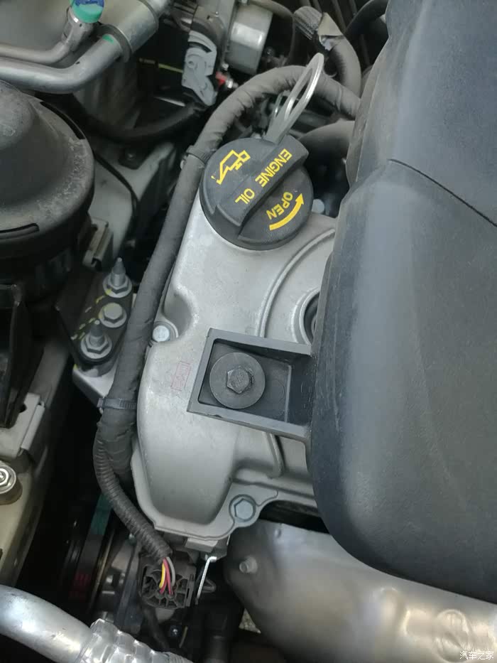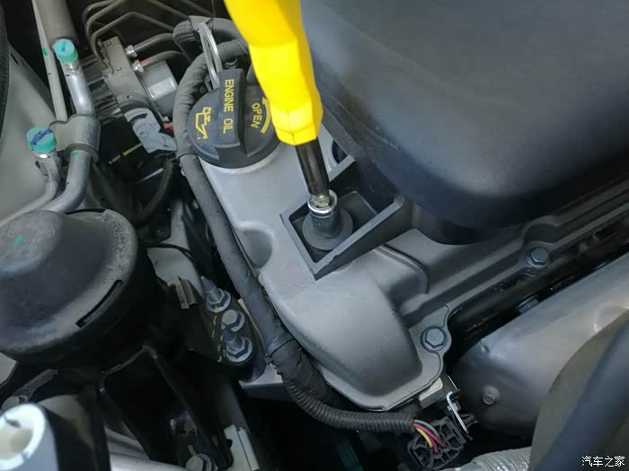 发动机舱还算干净吧,首先拧开这个外六角螺丝。