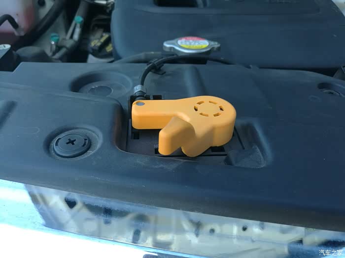 打开发动机舱,注意这个黄色的。