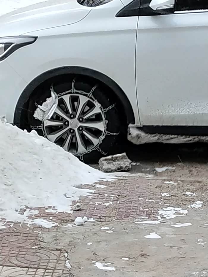 装了防滑链,个人建议没有大陡坡还是买橡胶的链子,铁链子太伤轮胎了,