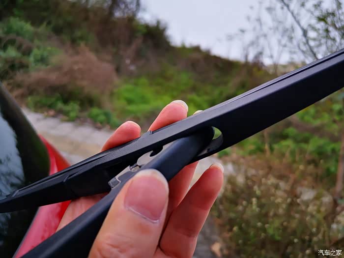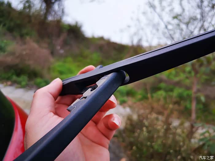 把雨刮条上在雨刮臂上,上的时候注意滑槽和卡点。