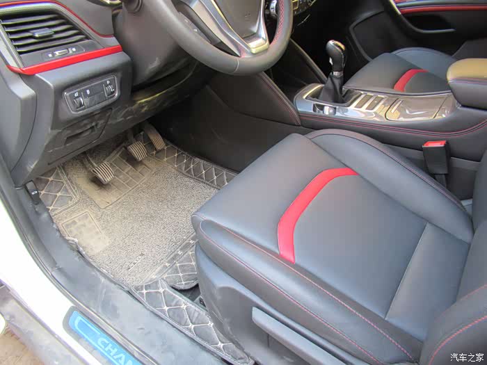 黑色的内饰运用了红色线条缝制很是动感。