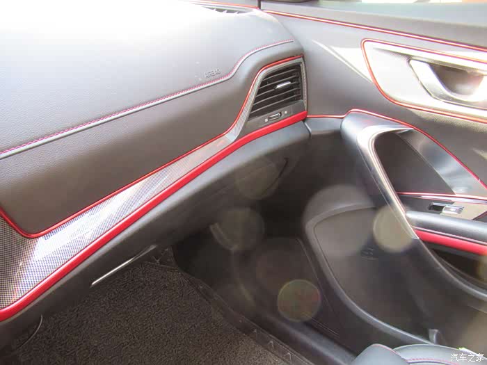 车内的红色线条运用的比较多十分年轻化。
