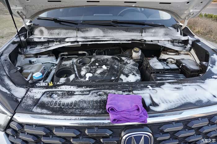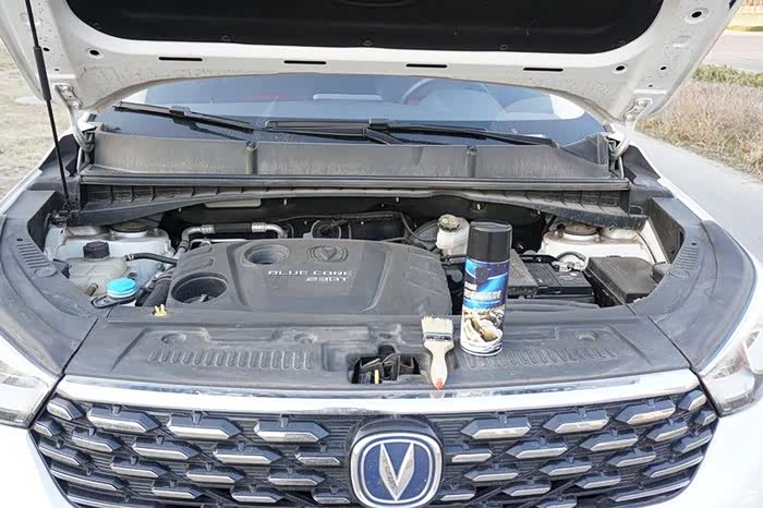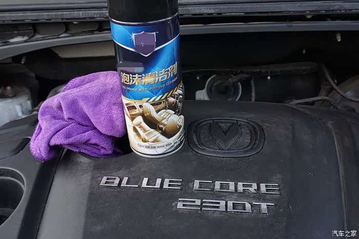 现在CS55是我最贴心的朋友,它是我出门必备的交通工具,它为我遮风挡雨,这么长的时间里没有出现过一次抛锚的事情,我对长安汽车的质量还是放心的,毕竟长安是一家老军工企业。想要出门放心大胆的开车上路,车辆定期检查,定时做保养是必不可少的。大保养需要找专业师傅做,日常的小保养最好平时自己动手。今天先清理下我的CS55的发动机机舱,平时去4S店做保养的时候,店员每次都是用压缩空气简单的吹一下,这样的方法只能清理表面的灰尘,污垢、油污这些是吹不掉的。要用专用的清洗剂清理,我在网上购买一瓶专门清理油泥污垢的泡沫清洗剂,是专门清理发动机机舱用的,今天就为爱车清理一次吧。