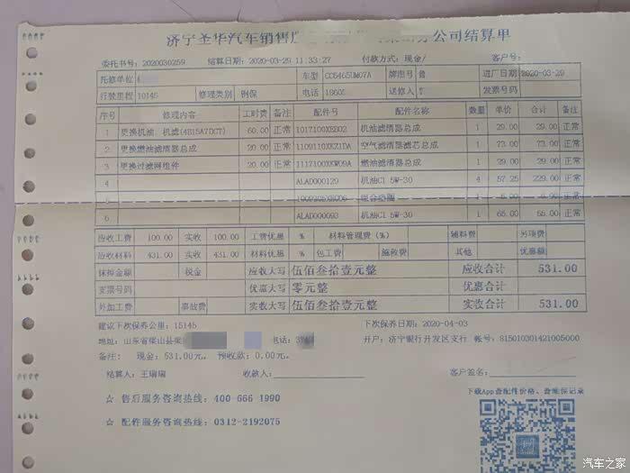 今天礼拜天,复工后第一次能抽时间休个礼拜天,一看小车都跑了一万公里了,抓紧给小车做个保养。吃完早饭,9点钟,便来到4S店里面,其实对于这次疫情,虽然我们山东的患病数并不多,但是去往营业性质的场所还是比较谨慎的,比如商场,饭店等,这次去4S店其实也是有点小担心。不过来到店面门口,看到他们防疫措施如此到位,悬在心里的石头算是落了下来。来到店门口,先停车登记,酒精消毒,测量体温,然后工作人员再对车辆轮胎和驾驶室进行消毒。消毒完毕,再进行保养登记,服务人员下单后,给我讲解了本次保养需要更换的项目,和所需价格,让我签字确认后,把车开进车间。由维修技师进行保养。首保的时候没来得及拍照,今天没事,跟踪下保养的全过程吧!