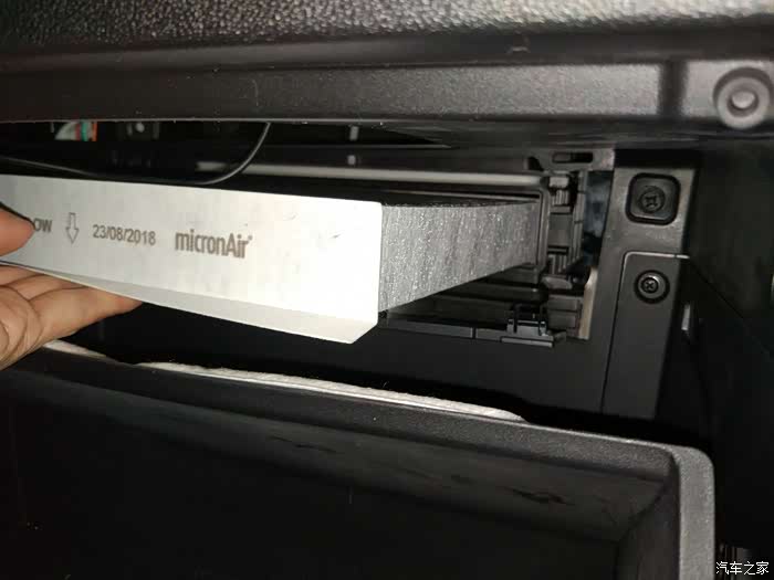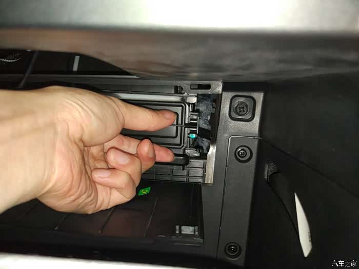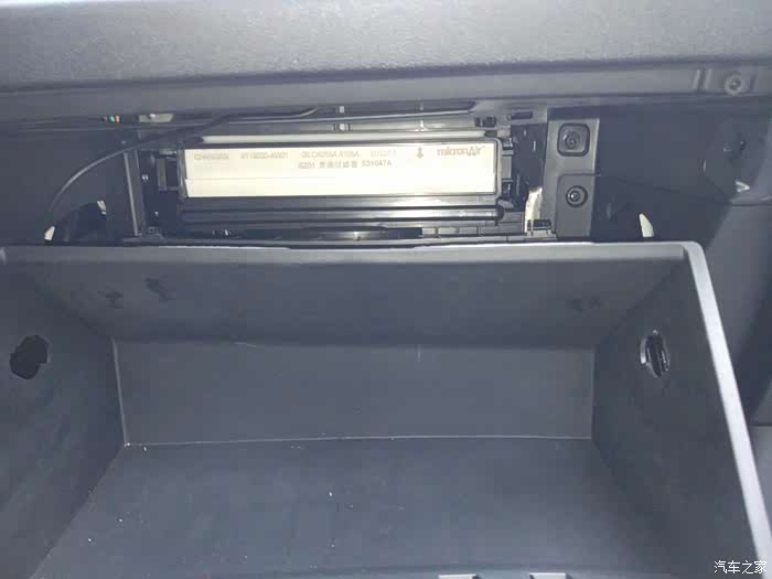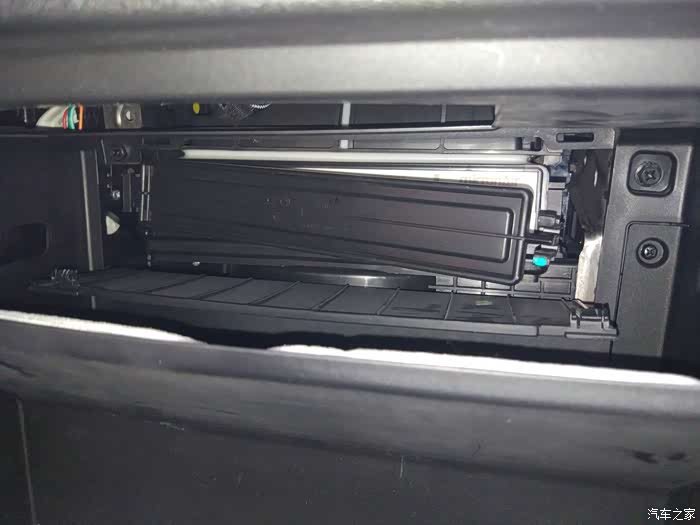 打开手套箱,可以看到里面的空调滤芯安装位置。接下来全过程都是徒手操作哦。