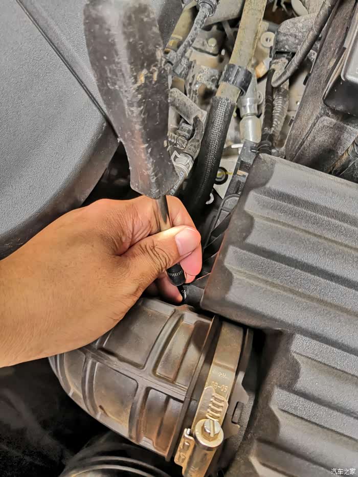话说三保清晰空调后,更换了内循环的空调滤芯,为什么不更换这个呢?因为本人在官网买了,空调滤芯先到,而这个后到。今天下午抽空,去修车师傅那借来起开盖子的套筒螺丝刀,进行了更换。一般自己能更换的配件,自己买跟在四S店买,价格还是相差很多的,当然如果你对这行不熟悉,也容易中招,买到不好的产品。毕竟4S店的开店成本高啊,各种税收!闲话扯了一堆,正式施工。不过手柄不长,不怎么好用力,就慢点启开螺丝,工具没有磁性了,为了防止螺丝掉落,差不多除来的时候赶紧用另外一只手把住螺丝,以防掉到发动机舱去。安装的时候也是一样的,在螺丝没进去之前,一只手拿手柄,一只手把住螺丝,以防脱落。