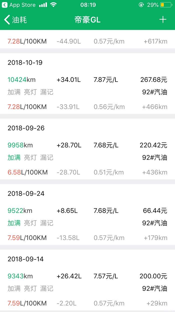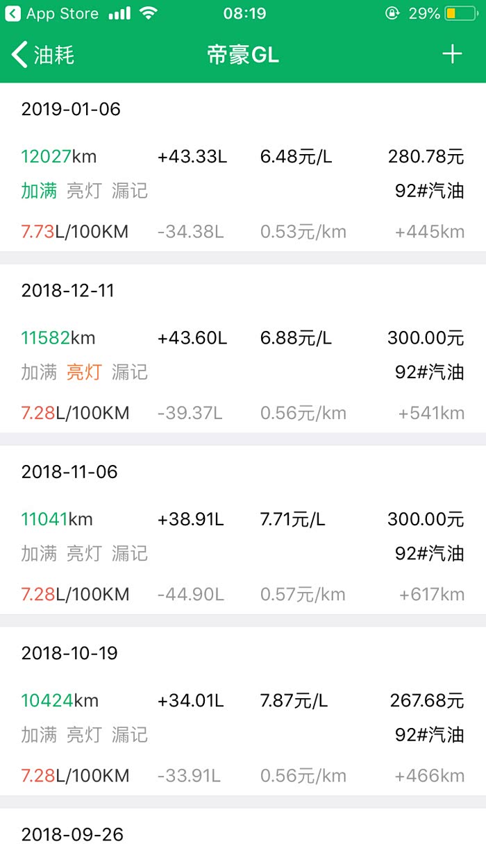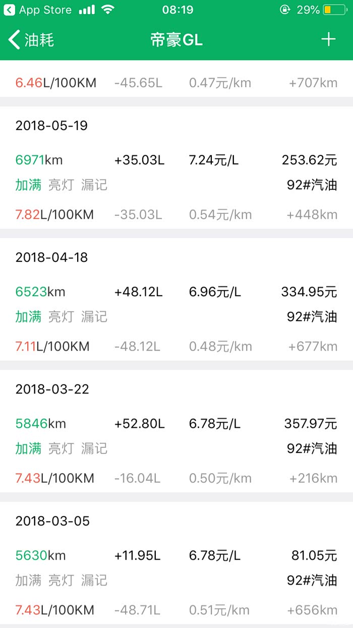 油耗这个东西除了车子本身以外,还跟开车人的习惯、每次行驶里程有很大的关系。