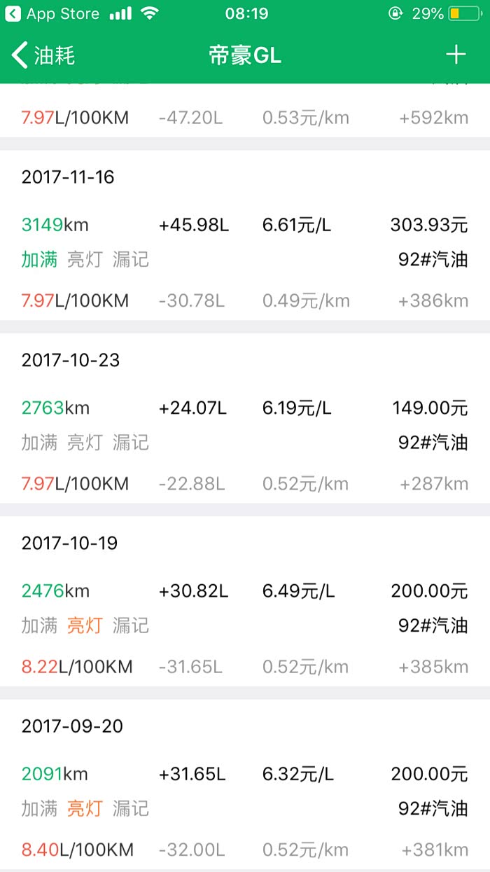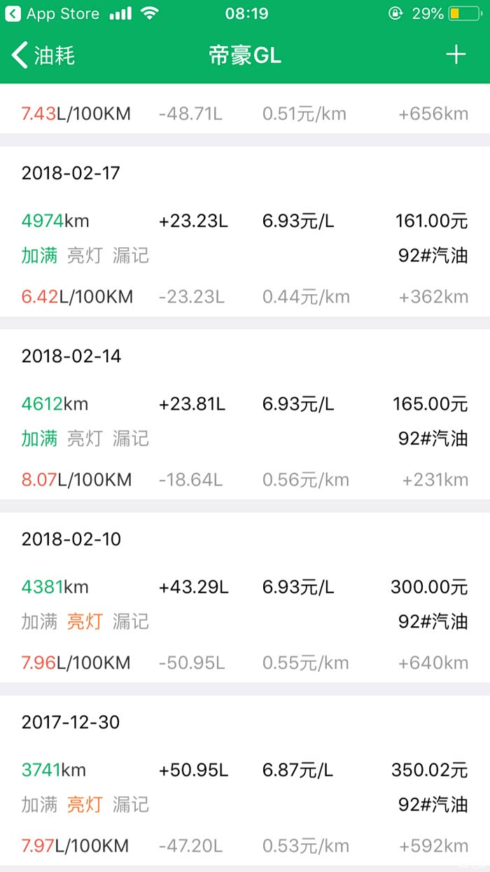 金胖基本上都是老婆在开,还是很温柔的,时速基本上不超过60km/h,每次回乡下来回8km,单边4km,属于水温刚上来就到地熄火的状态,这样的情况下百公里油耗不超过8个。