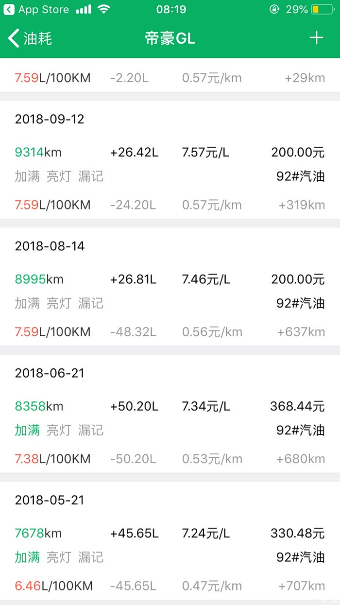 从买车到现在,油耗基本上稳定了,市区短途7.5左右,不超过8个,纯高速6个以下。