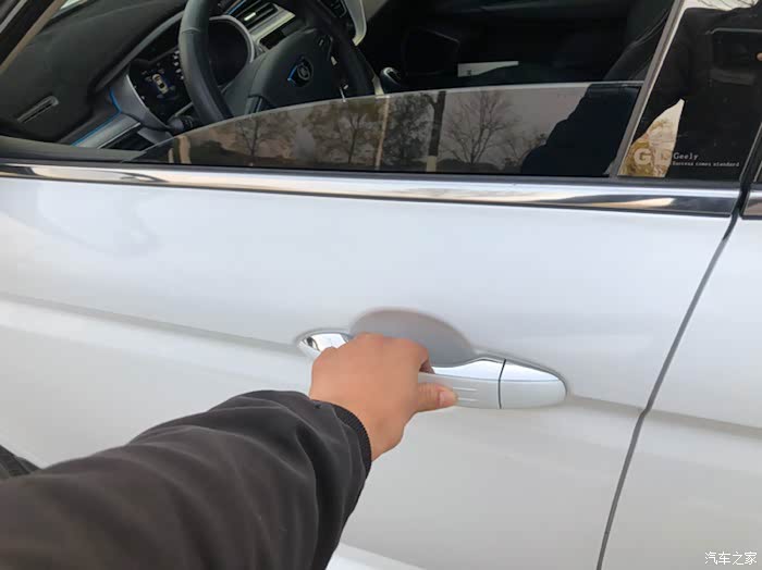 精致的开门拉手,四窗一键升降防夹手功能,挺好的
