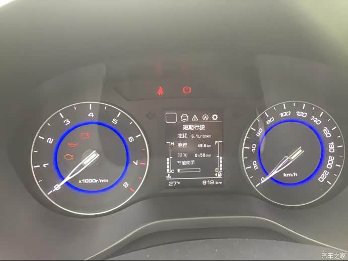 上下班在内外环不堵车的情况下面,最低油耗能够达到6个油左右。逸动DT有一个小功能,在油耗显示的下面有一个节能助手显示,只要我给油的时候保持在“高效”的油门深度,油耗就会更低。