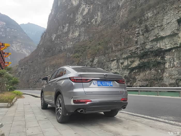 峡谷高耸威严悬崖峭壁同样压不住cs85尾部的霸气感。