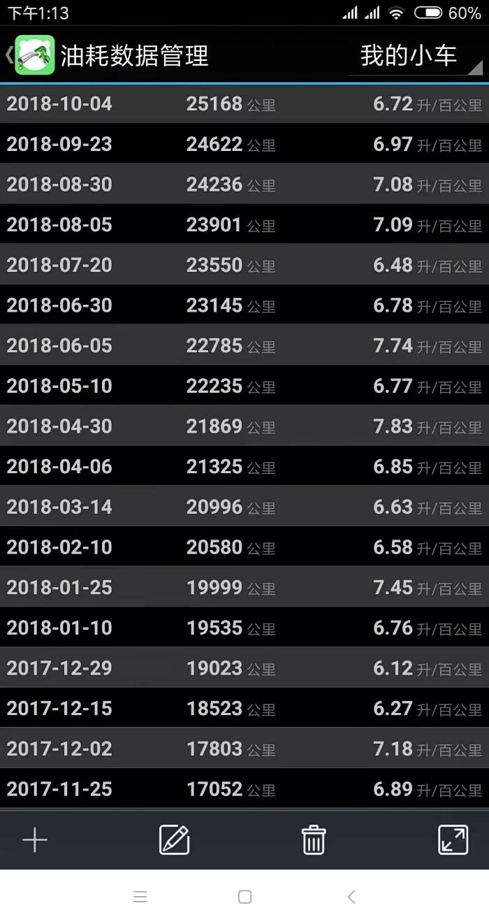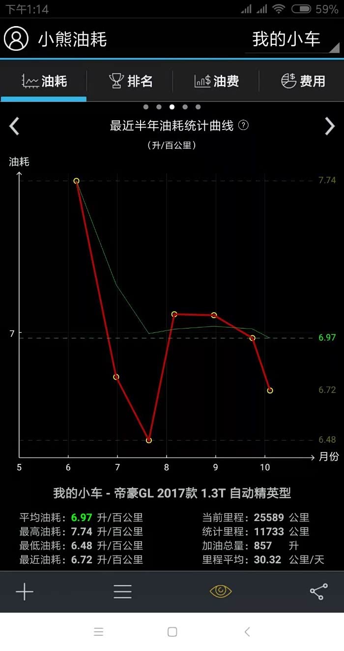 自己每次加油都有统计公里数和加油量,这个综合油耗我个人还是挺满意的。