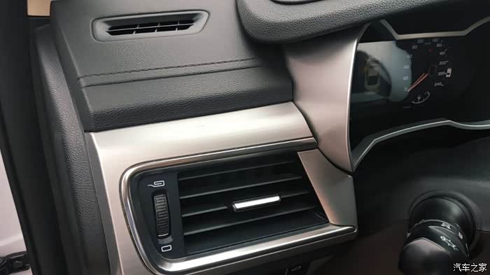内饰方面也做的不错,整体简洁大气,做工也算用心之作了,差不多看得到摸得到的方都是用软软的材质做的,比较舒服,中控台中间的供桥出风口也是很独特,门板上、中控表面还有很多地方也用回纹装饰,挺有中国味,中控台表面大部分用金属拉丝铝组合包裹,这样的组合使整个中控看上去高档大气多了。