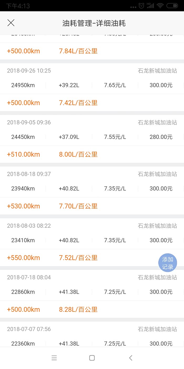 经常跑环城路的油耗记录