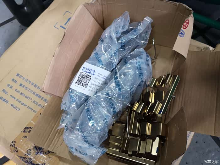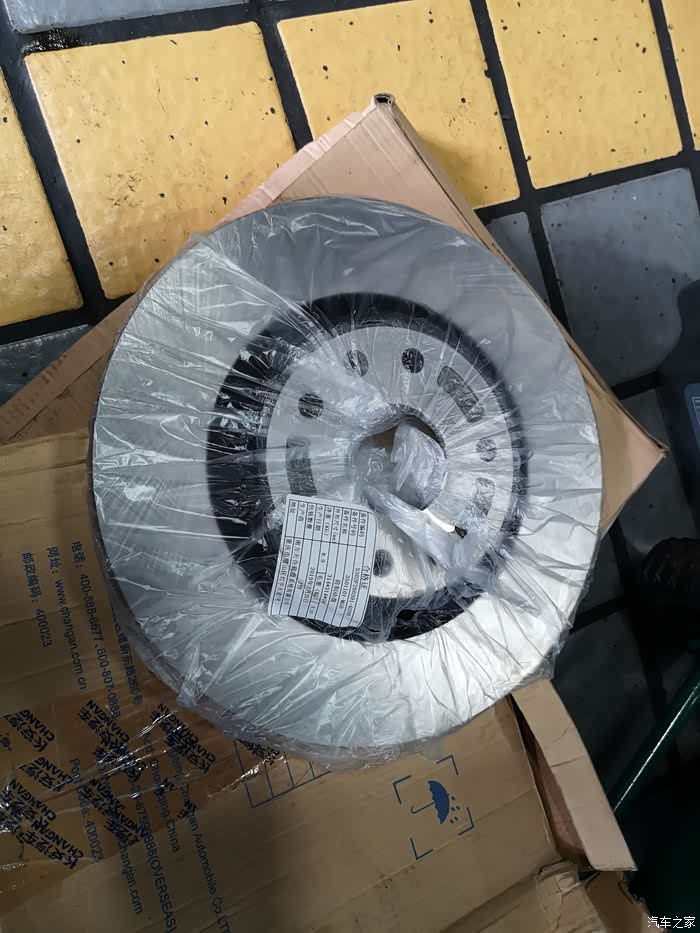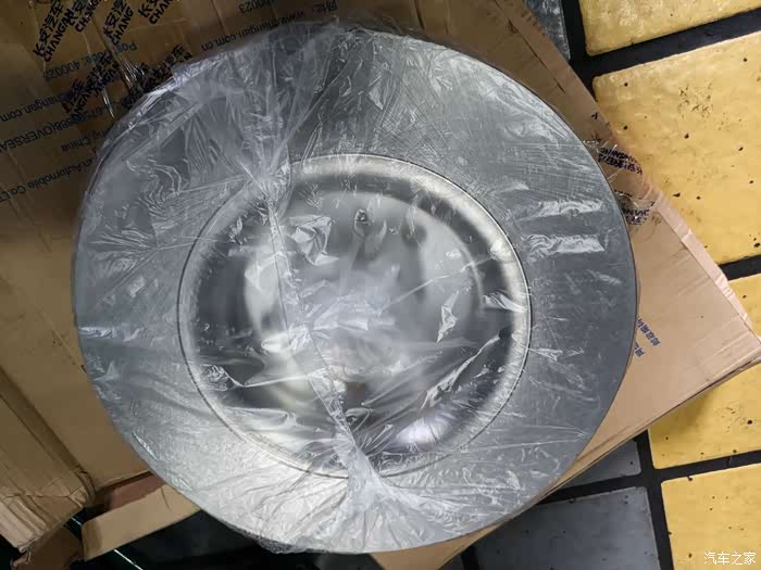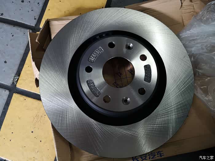 这是全新的CS85刹车盘,虽然自己的爱车只有左前刹车盘有些小问题,但还是前面左右一对全部更换。