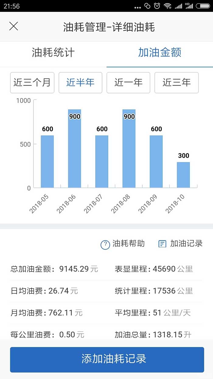 之家的加油金额记录!