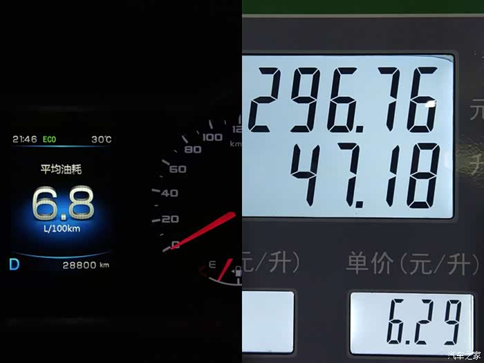 表显油耗:6.8升/百公里(油表从未清过零)