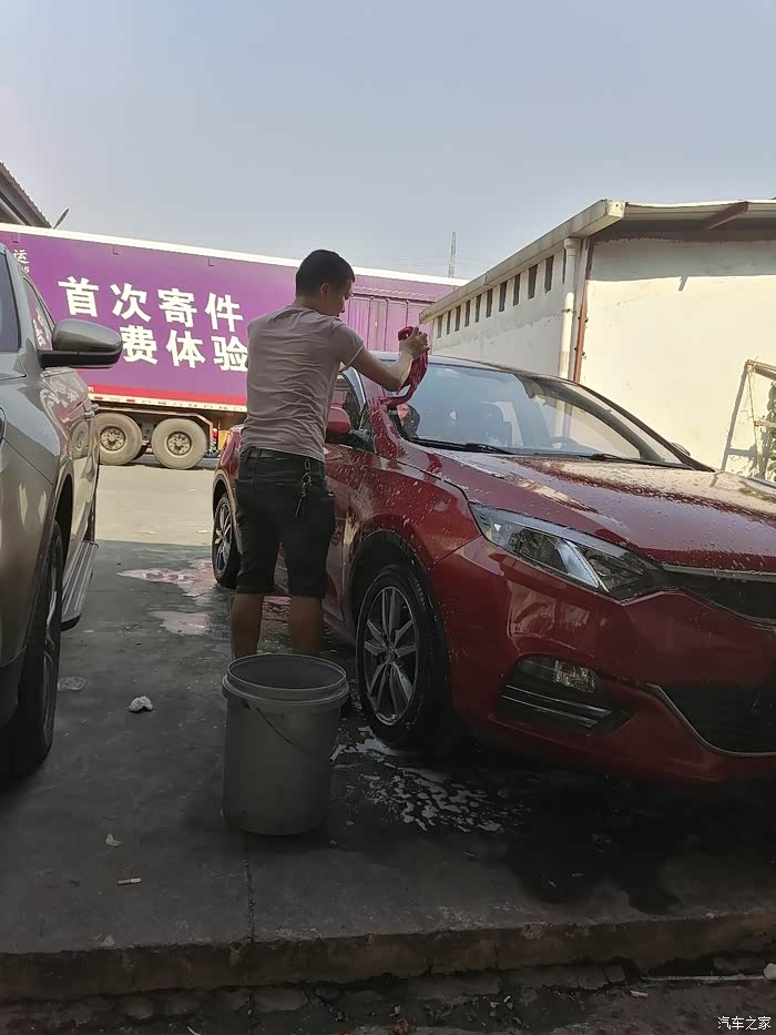 洗车,还是很讲究的,要先用水把面上的灰尘冲一遍,然后再用洗洁精兑好水,洒在车子面上。