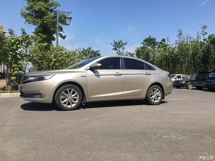 在外观的帝豪GL的颜值真的帅呆了,拥有自己独特的设计风格,前脸远近一体的大灯有点像鹰眼,锋利有神大灯内都标有吉利logo,中网是用吉利家族的涟漪形,大灯与中网协调恰好,加进气格栅像张开的鲨鱼嘴,整个前脸威猛侧面设计得很好看,腰线从倒后镜直通车尾侧面饱满加微微溜背运动感十足,(有点轿跑的风范)。尾部也够丰满,小鸭尾挺好看的,尾灯采用LED光源,尾部双装饰排气出口(真的排气口藏在里面)使整个车尾增添运动感~~内饰~~帝豪GL除了外观时尚,在内饰整体设计也挺适合年轻人口味,内饰方面简洁大气,做工也算用心之作了,用眼看到或用手摸得到的地方差不多都是用软软仿皮材料去做的,用手摸上去感觉挺舒服的,中控台中间供桥出风口也独特,内部装饰容入很多的中国风味在里面,加上中控表面部分用金属拉丝铝组合,这样组合起来使整个中控看去高档大气。~~配置~~在配置上吉利也算是够丰富的了,也挺实用的,像无钥匙进入,无钥匙启动,胎压监测,自动头灯,蓝牙与电话,四门一键升降,自动空调倒后镜自动折叠,AQS空气净化,ESP车身稳定系统,上坡辅助,自动驻车,倒车影像等等…..的配置,说实在的这个价格在车,比合资车好多了。