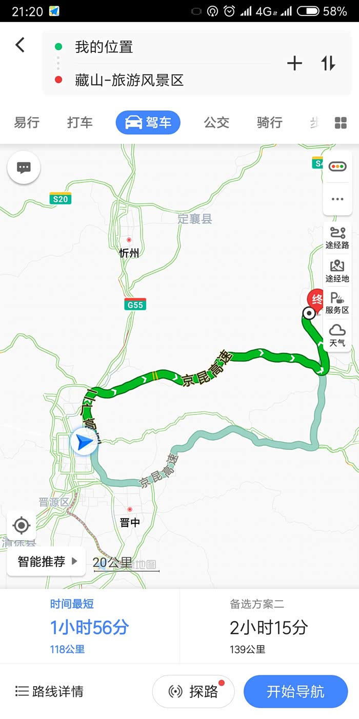 此时行程的大概路线。单程120公里左右。城市道路+高速+国道。