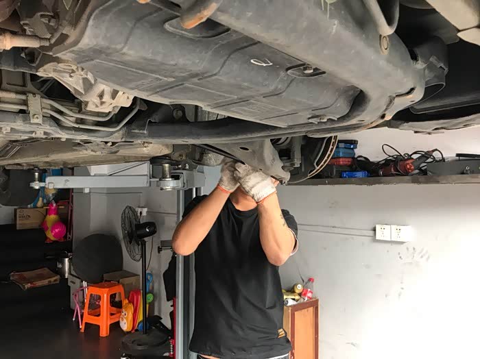 发现问题了,左侧转向拉杆橡胶老化,有一定间隙,行车容易发生高速抖动,准备更换。