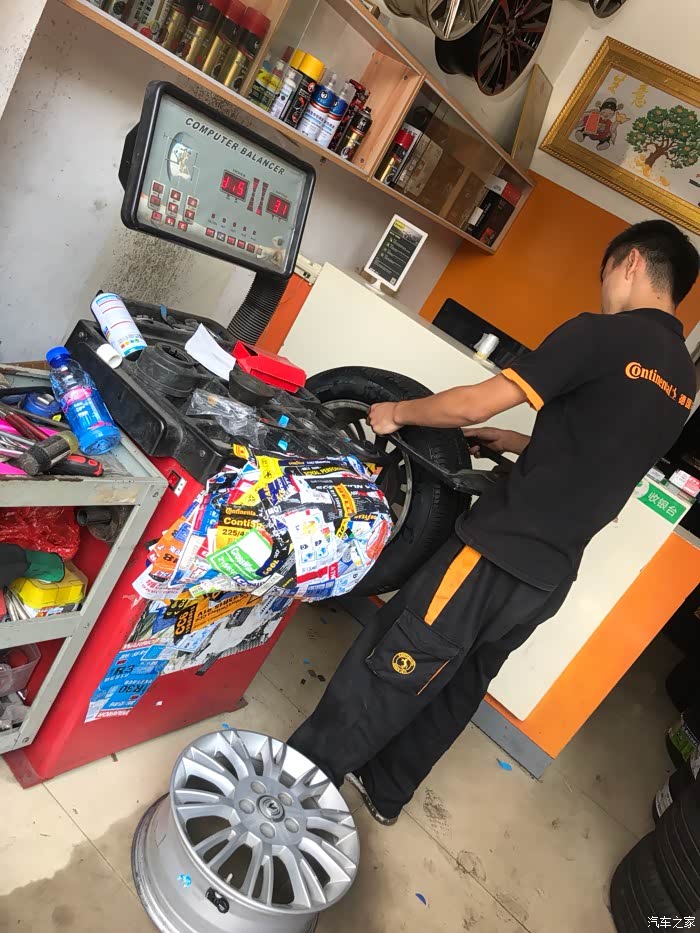 顺便在做个四轮定位,跟换轮胎老板免费做四轮定位,给你老板点个赞。