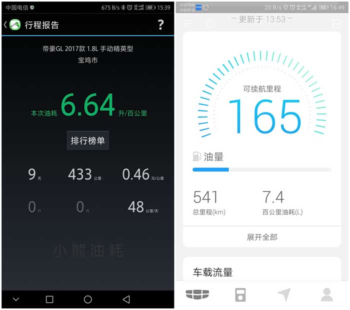 平日里基本在市区跑,平均速度只有19公里,大约每公里在0.56左右,按市价基本就是百公里不到8个。这可是一个长达4725、宽度1802、轴距2700的一个大家伙,这个油耗可以说是吉利GL即外形,做工、动力外给我的又一个惊喜。我们这里是个山城,东西狭长、南面是巍巍秦岭,北面则是厚重的黄土高原的边缘,出门就是上坡下坡,我的家乡在66公里以外的一个小县城,海拔1600米,每每回家,都要从海拔500米爬到海拔2000米再下到1600米,油耗的表现亦是给予我很大信心。
