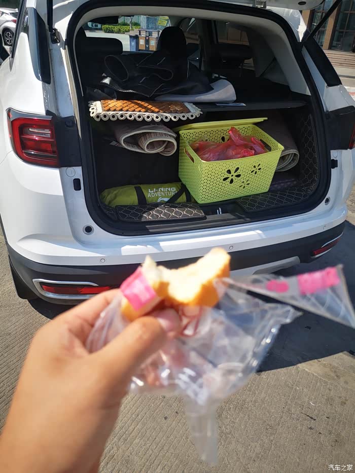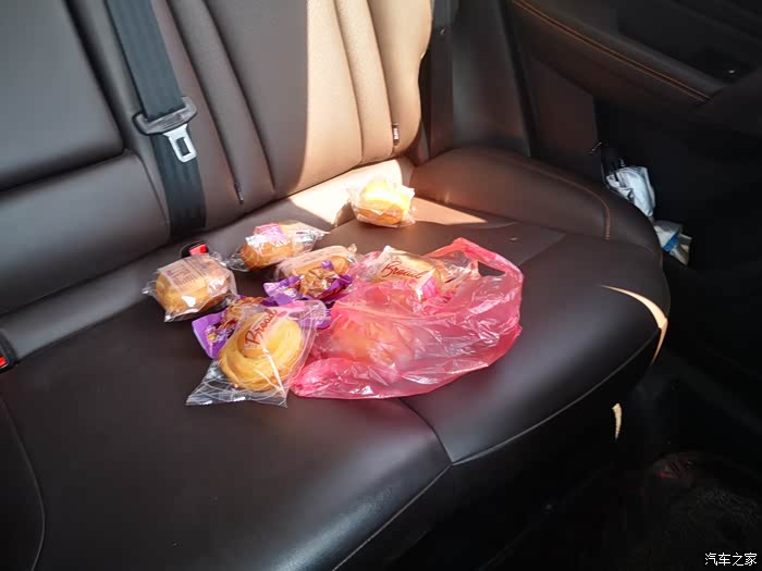 买了一些吃的放在后排 !时间紧张,没有吃午饭就出发了 !