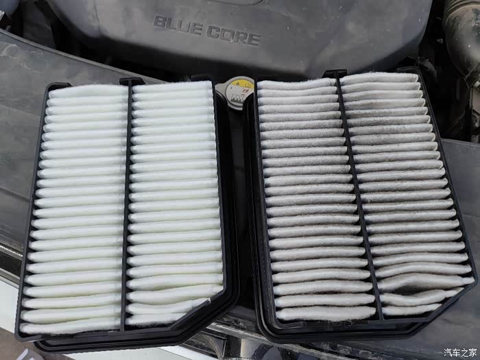 新旧滤芯比较一下,确实改换了明显旧的太脏了。