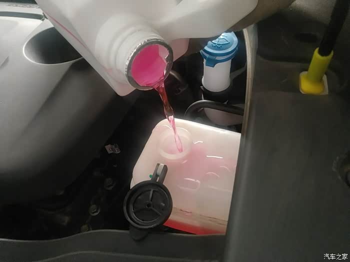 防冻液也叫防冻冷却液,加防冻液的位置和玻璃水挨着,放防冻液的盒子里有个上限和下限的标线,防冻液要保持在这个中间位置就是对了,做完保养以后,售后师傅看了看防冻液稍微有点少了,就给我免费加上了,这些免费的服务还是很贴心,很值得点赞的。