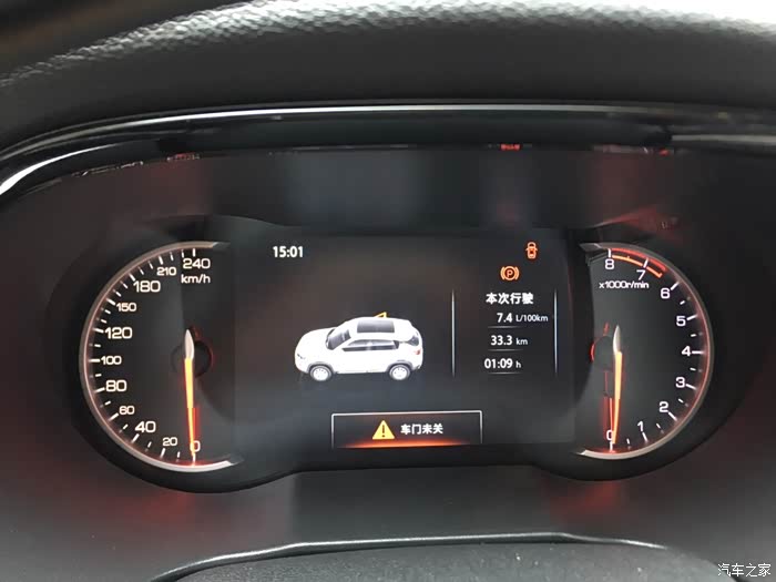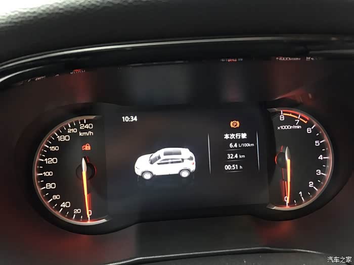 回家后,把车停好,关闭发动机后,显示了本次行驶的油耗7.4L/100km,比去的时候高了1个油。去的时候,一路上都比较顺畅,就算进入隧道前的那段,速度都有40-50的速度;而回程的路上,上高速到进隧道的几公里,一直在蠕行,大约20分钟,隧道里车速也就30-40,出了隧道才快起来。行驶距离段,堵车时间的长短,对油耗影响很大。单程30km,也就烧2-2.5L油,堵车时,车不走,而发动机怠速,油耗不低。
